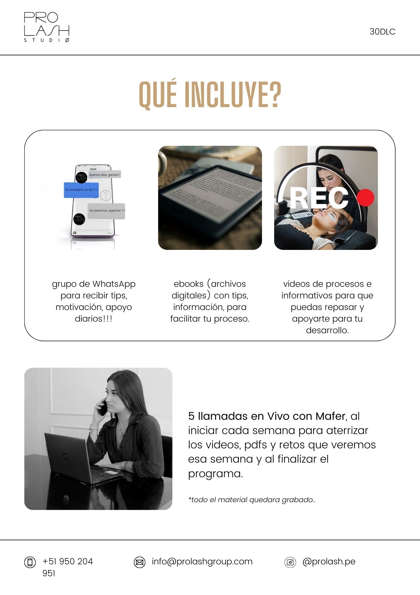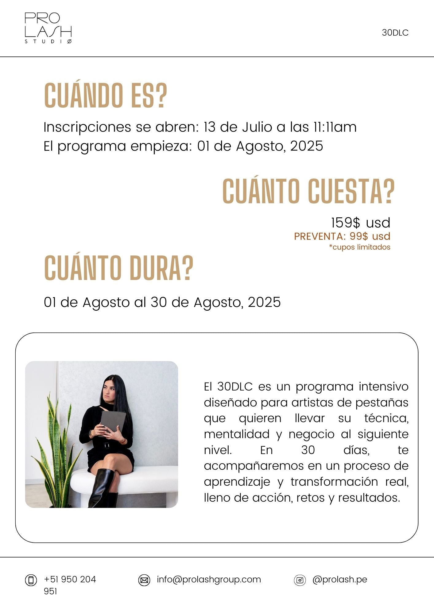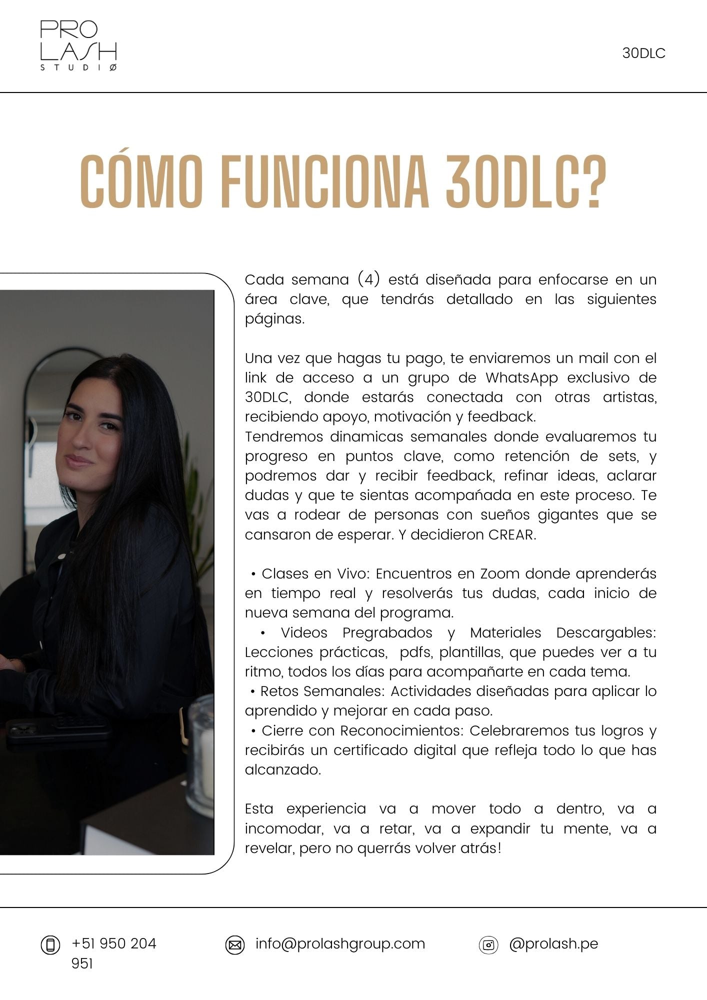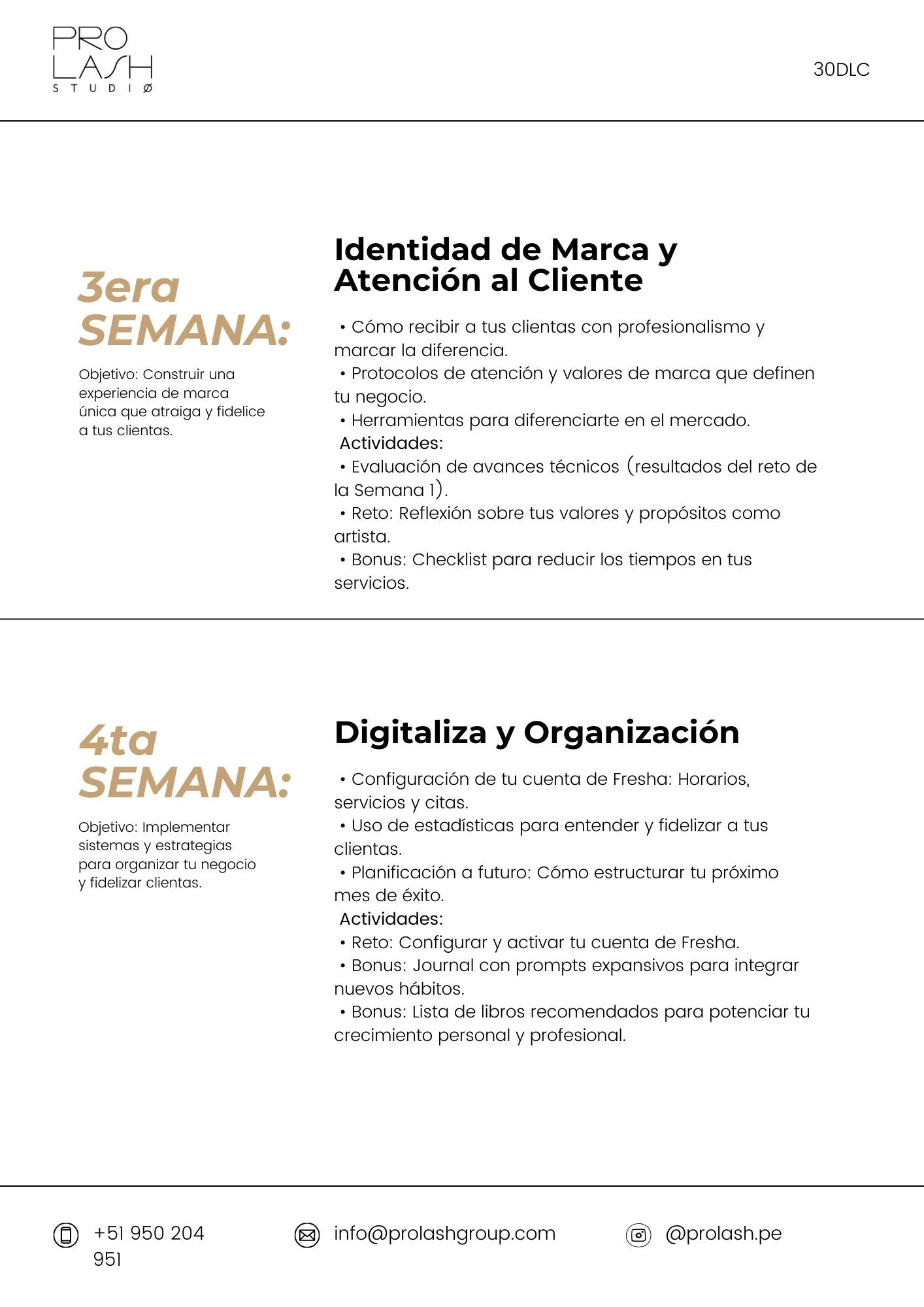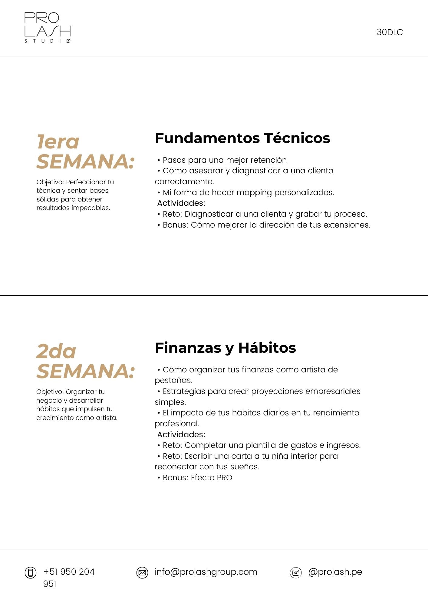 El 30-Day Lash Challenge es más que un simple curso; es una transformación completa para tu carrera como lashista. Durante 30 días, te guiaremos para que perfecciones tu técnica, organizes tu negocio y fortalezcas tu mentalidad profesional. Este programa está diseñado para que, paso a paso, alcances el siguiente nivel en tu profesión.